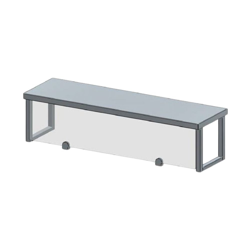 Rozsdamentes acélból készült egyszintes, síküveg leheletvédővel rendelkező átadó polc.