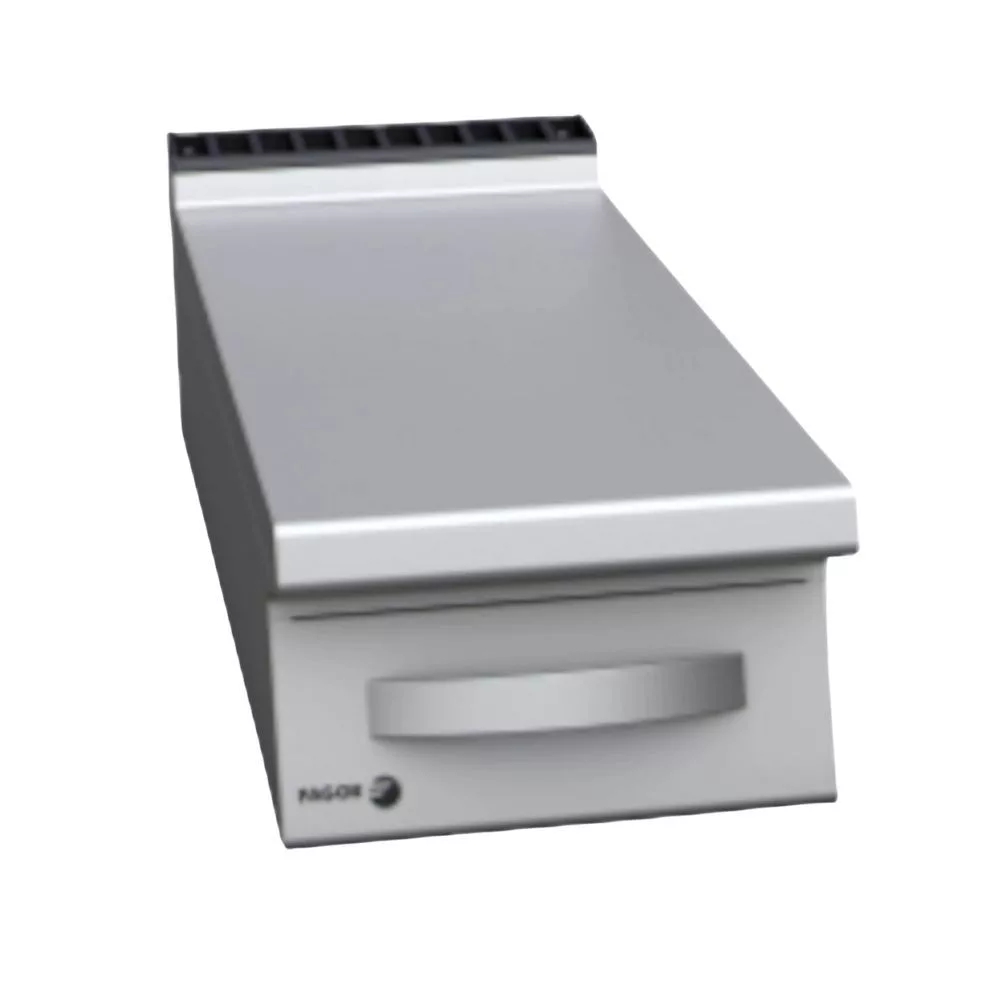 Spanyolországban gyártott, rozsdamentes acélból készült blokk munkaasztal. 2 mm vastag AISI-304 rozsdamentes acélból készült, mélyen húzott felület. Lézerrel vágott kötések és automatikus hegesztés. Rejtett csavarok.