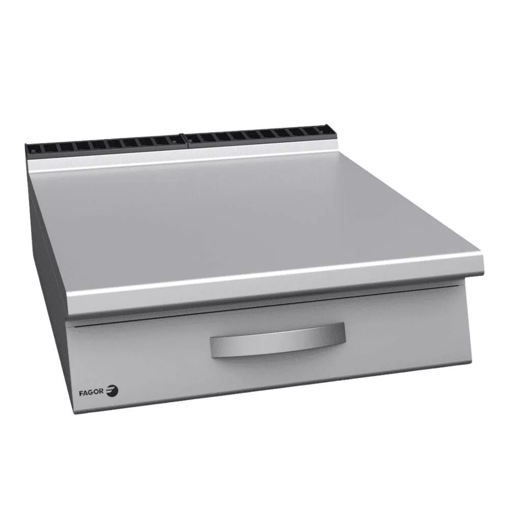 Spanyolországban gyártott, rozsdamentes acélból készült blokk munkaasztal. 2 mm vastag AISI-304 rozsdamentes acélból készült, mélyen húzott felület. Lézerrel vágott kötések és automatikus hegesztés. Rejtett csavarok.