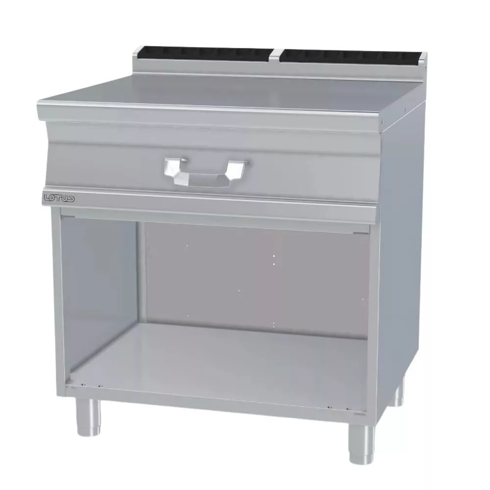Olaszországban gyártott, rozsdamentes acélból készült blokk munkaasztal, zajtompított, 2 mm vastag munkafelülettel. Hátsó felhajtással, lekerekített szélekkel, 1 db fiókkal rendelkezik. Opcionálisan ajtós tárolóval.