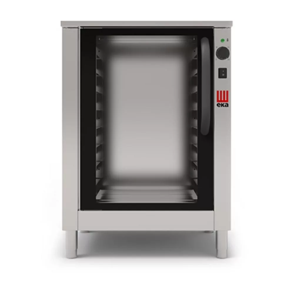 Az ipari sütőkre specializálódott Olasz Tecnoeka 8 db 429x345 mm méretű tálca befogadására alkalmas robusztus és kompakt kelesztőszekrénye.