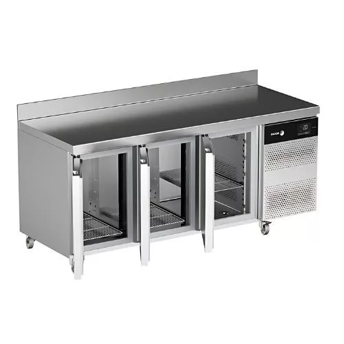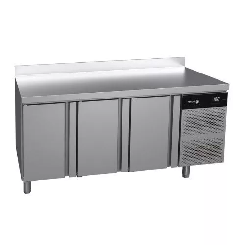 Spanyolországban gyártott hűtött munkaasztal, rozsdamentes acél kivitelben, 3 ajtóval.