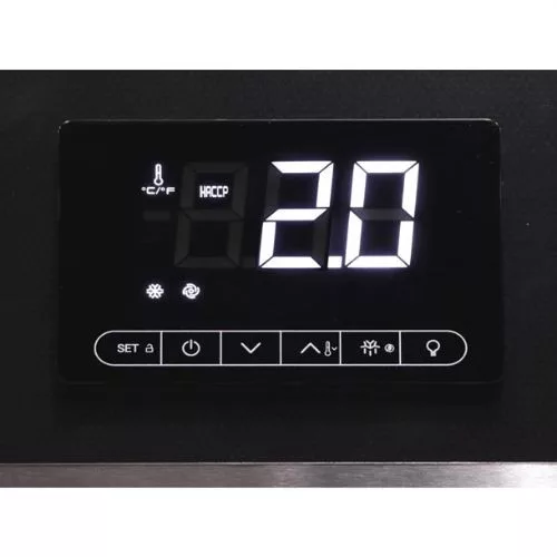 - kivehető és állítható magasságú műanyag borítású acélpolcok a könnyű tisztítás érdekében (GN1/1 méret)