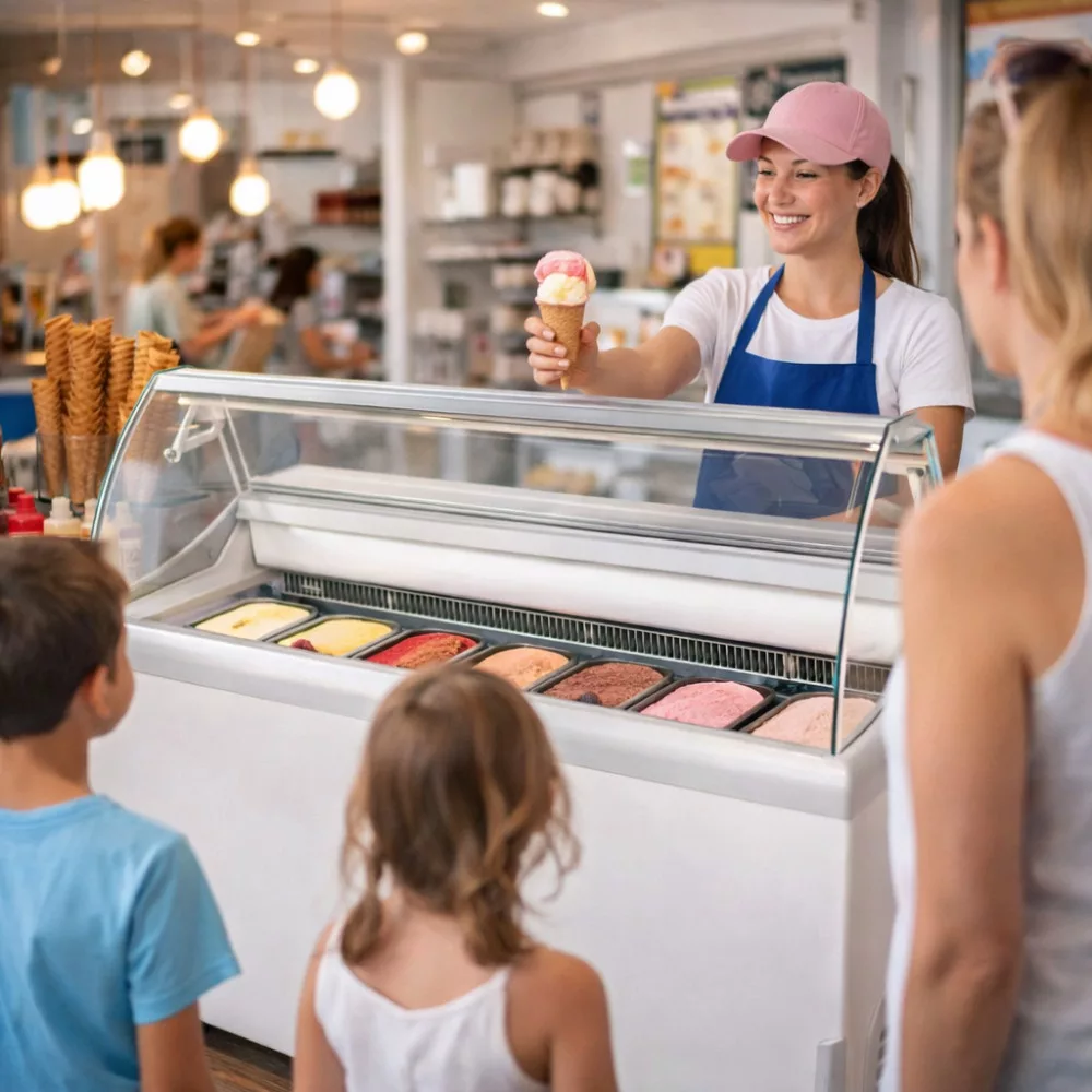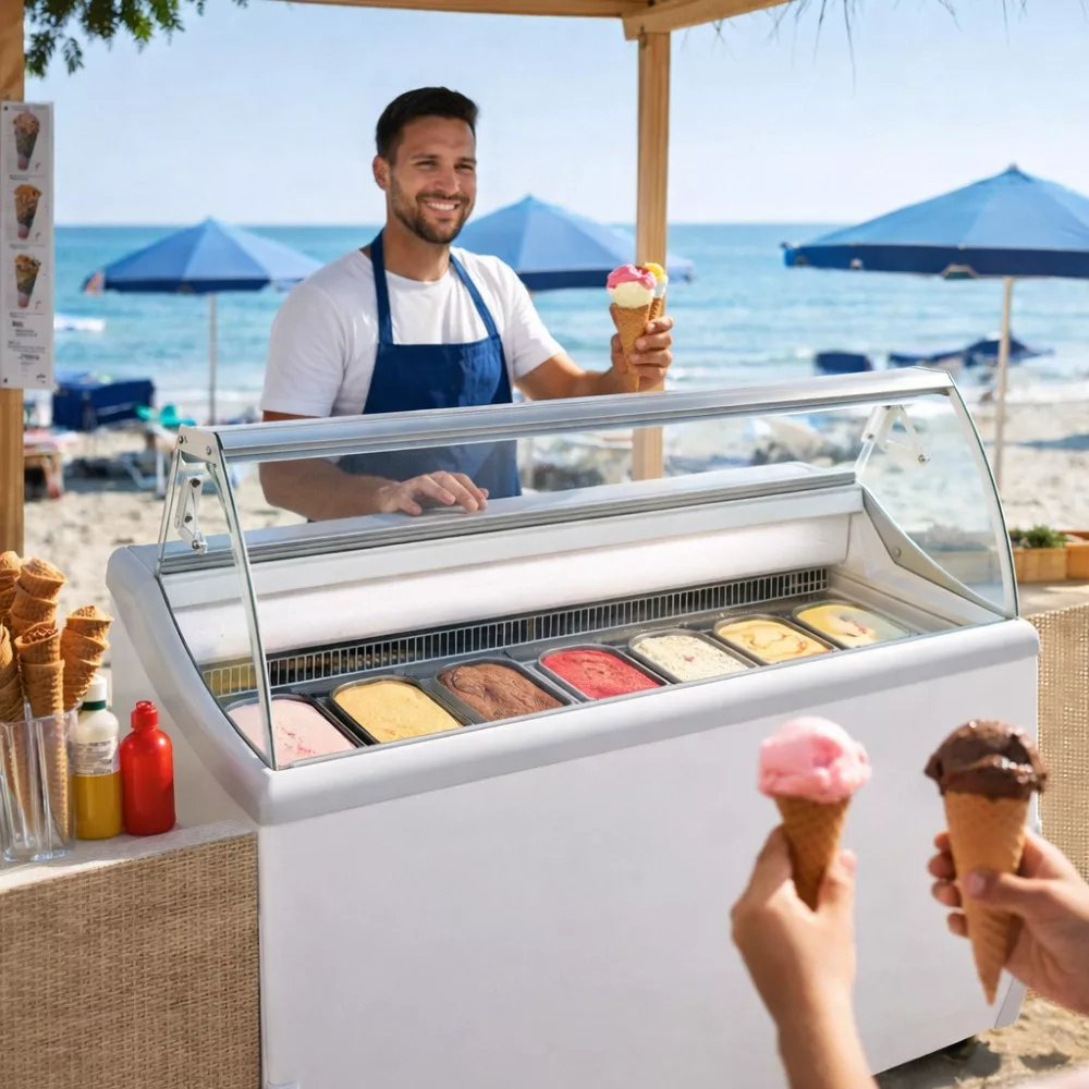 Modern fagylaltpult professzionális kiszolgáláshoz