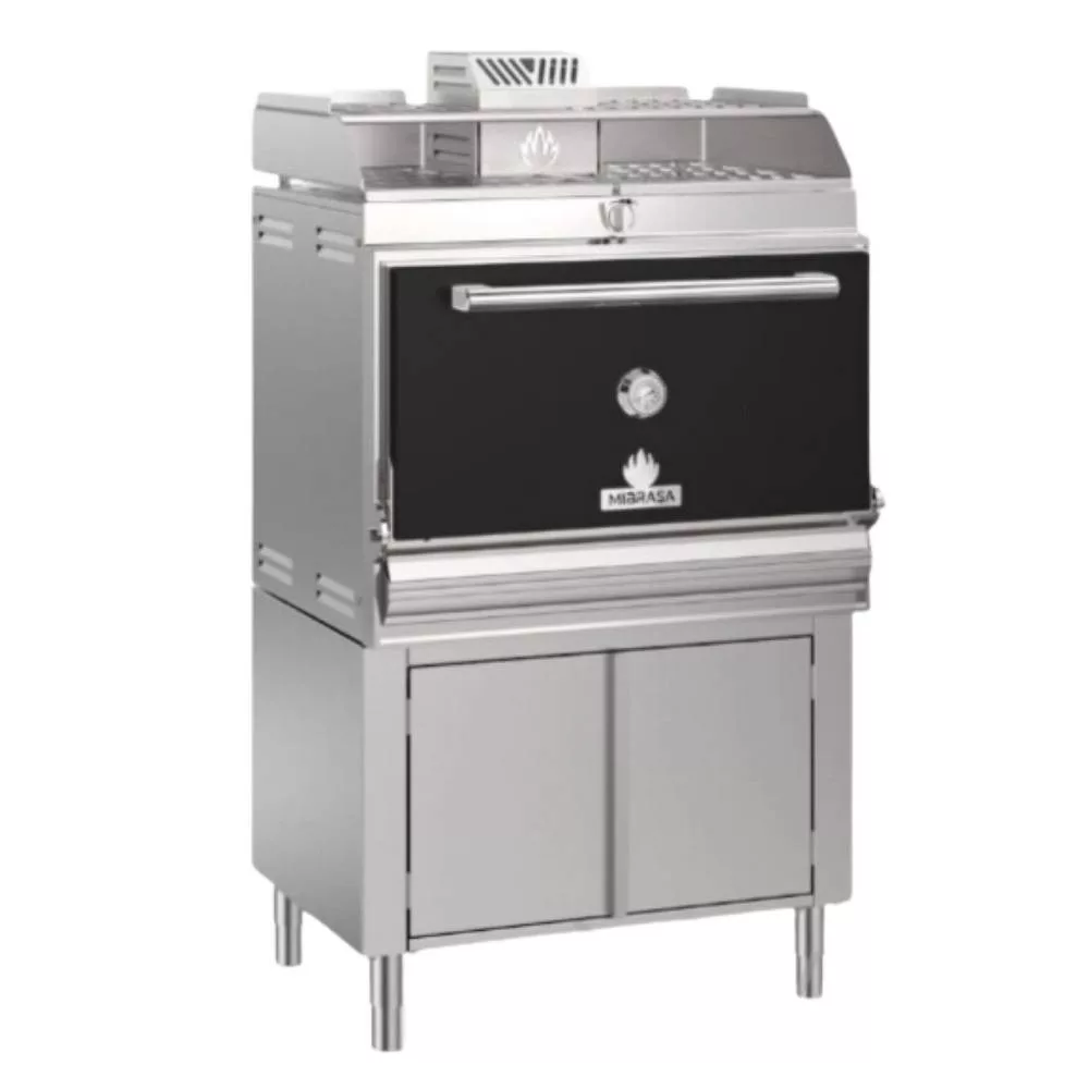 Mibrasa állványos, faszenes sütő, zárt grill. Melegentartó polccal és alsó tárolóval, légáramlás szabályzóval. Alsó fűtött szekrénnyel, a szekrény hőmérséklete 50-70°C között van, optimalizálva a sütő maradékhőjét. Több színben elérhető, így minden konyhához megtalálható a tökéletes stílus.
