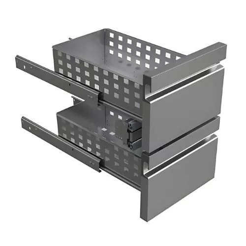 2x1/2 GN méretű fiókszett tökéletes megoldás arra, hogy Fagor Advance hűtött munkaasztalát a hagyományos szekrényes kialakításról, praktikus fiókos rendszerre alakítsa át. Egyszerűen beszerelhető, kiváló választás a hűtő belső terének még hatékonyabb rendszerezéséhez.