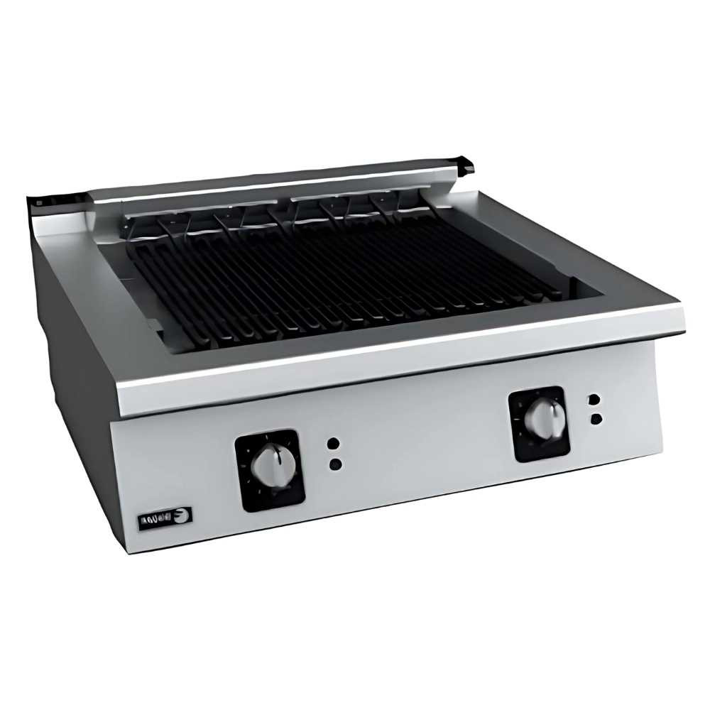 Könnyű acél rácsok, szerszám nélkül leszerelhetők, 170 mm széles szakaszokban. A grillsütő nagyon magas hőmérsékletet (400 ºC) ér el, így a termék felülete gyorsan lezáródik, belül pedig szaftos marad.