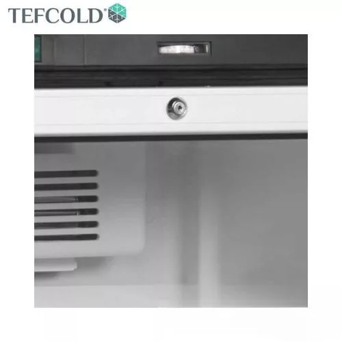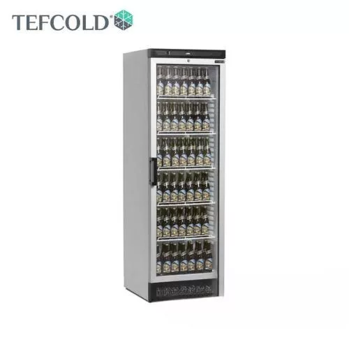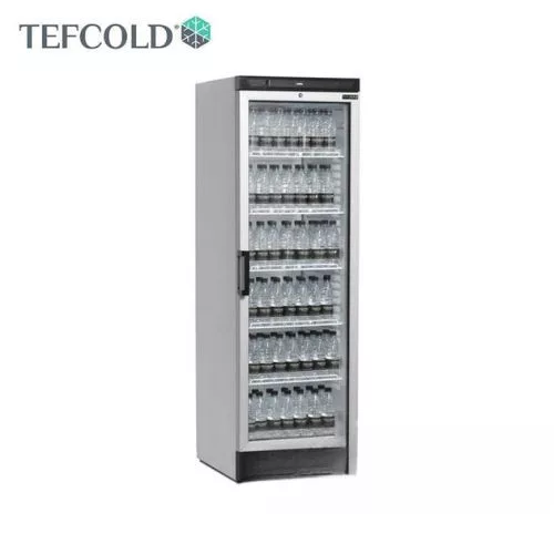 Professzionális hűtővitrin, 372 literes űrtartalommal (Nettó: 347 liter) állítható polcokkal, zárral, megfordítható alumínium keretes üvegajtóval, LED világítással.