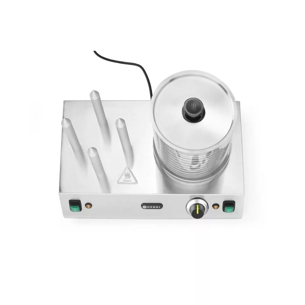 Ez a Hendi kolbász és hot dog melegentartó ideális választás, ha meleg, ízletes kolbászt vagy hot dogot kínálnál vendégeknek gyors kiadásra. Rozsdamentes acélból készült ergonomikus kialakításával hosszú távra tervezték, belső fűtőelemei pedig egyenletes hőmérsékletet biztosítanak. A kosárban egy elválasztó található, amely lehetővé teszi, hogy egyszerre kétféle kolbászt melegítsen, míg a négy fűtőrúd melegen tartja a bucikat, így készen állnak a felszolgálásra. Legfeljebb 24 cm hosszú kolbászokhoz használható. A termék halk működésű és karbantartása egyszerű, ideális választás gyorséttermekbe, büfékhez vagy rendezvényekre.
