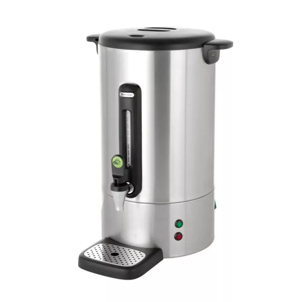 Ez az időtálló perkolátor az egyszerűséget és a megbízhatóságot ötvözi modern megjelenéssel, így különösen jól illik svédasztalos kínálathoz, rendezvényekhez és kávésarkokhoz. Rozsdamentes acél kialakítása nemcsak esztétikus, hanem strapabíró is, ellenáll a kereskedelmi igénybevételnek és könnyű tisztán tartani. A 7 literes kapacitás folyamatos, nagy mennyiségű kávé kiszolgálását teszi lehetővé anélkül, hogy gyakori utántöltésre lenne szükség.