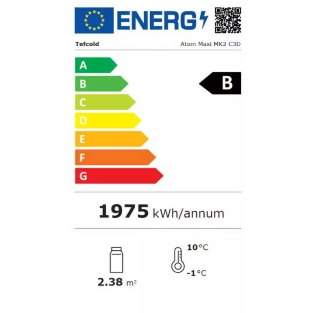 A fekete Atom Maxi hűtővitrin kiváló tárolási kapacitást kínál, ideális élelmiszerek és italok bemutatására is szupermarketekben, kisboltokban, kereskedésekben. 1664 literes űrtartalommal (Nettó: 1264 liter), önzáródó üvegajtóval, állítható polcokkal és belső LED világítással, ventilációs hűtéssel.
