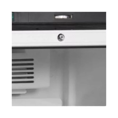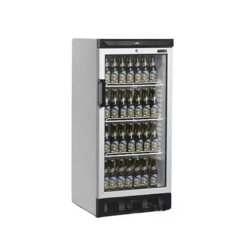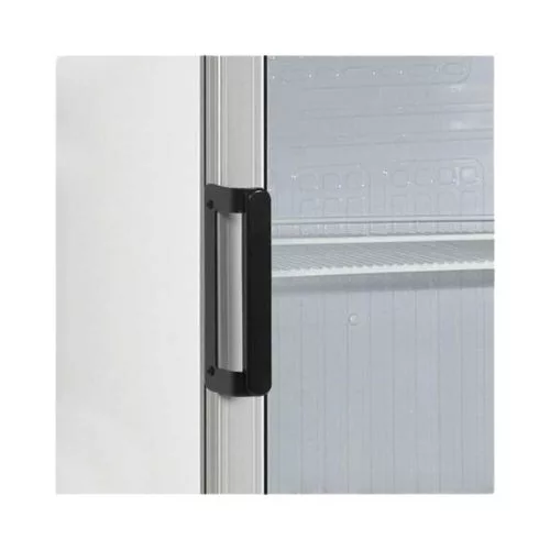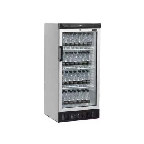 Professzionális hűtővitrin, 215 literes űrtartalommal (Nettó: 190 liter) állítható polcokkal, zárral, megfordítható alumínium keretes üvegajtóval, LED világítással.