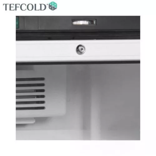 Professzionális hűtővitrin, 372 literes űrtartalommal (Nettó: 347 liter) állítható polcokkal, zárral, 2 megfordítható alumínium keretes üvegajtóval, LED világítással.