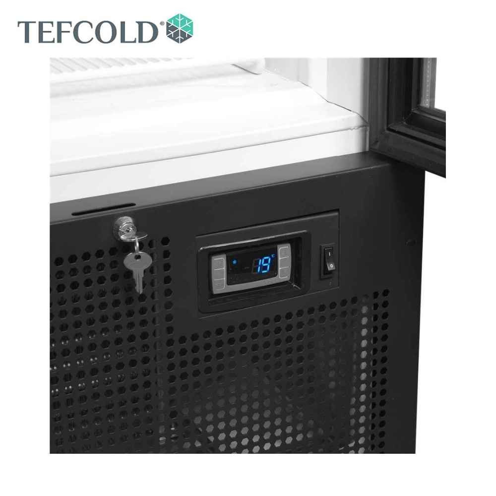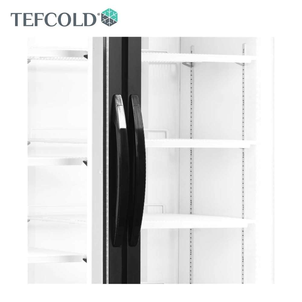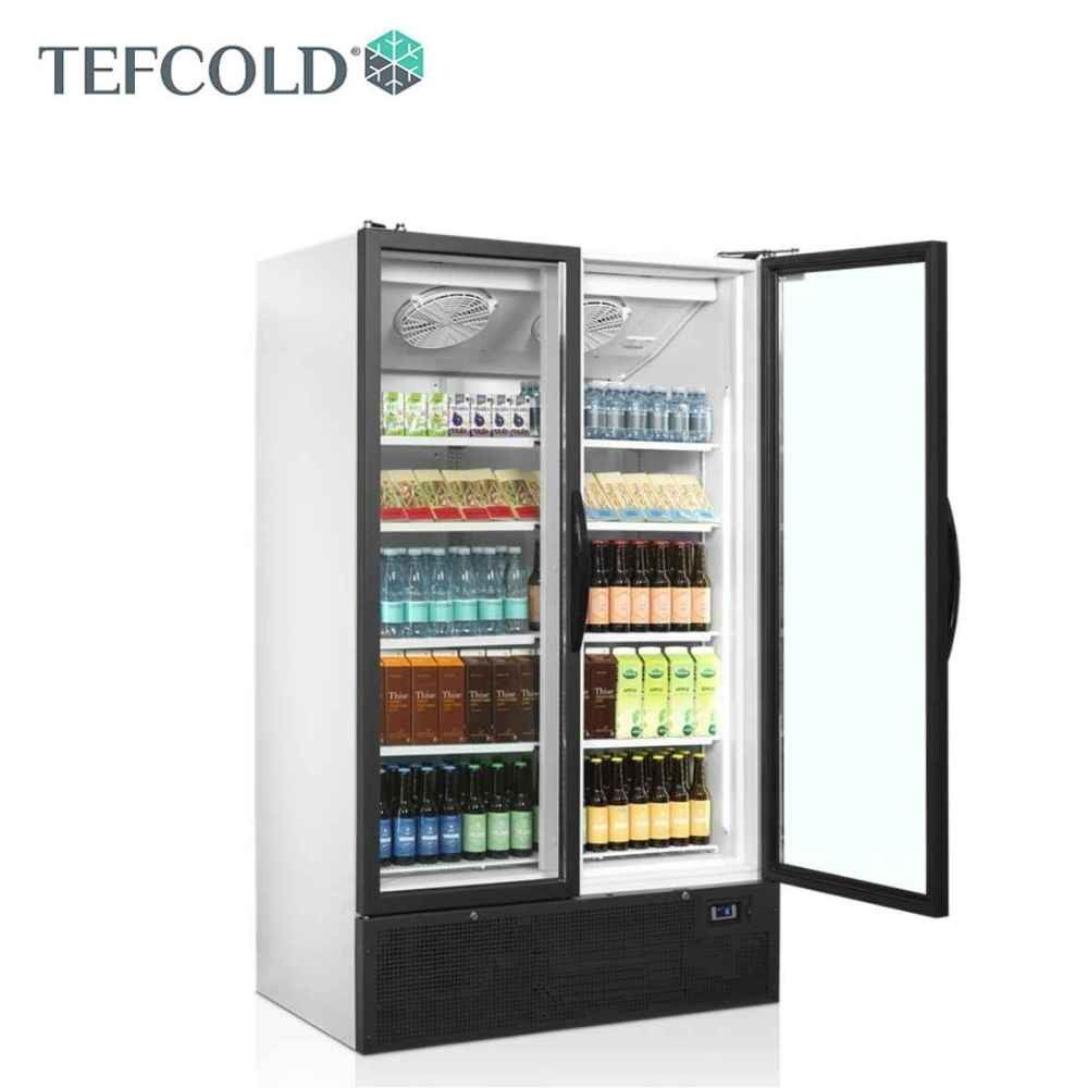 2 ajtós hűtővitrin, függőleges belső világítással, állítható polcokkal, állítható lábakkal, alumínium keretes üvegajtókkal, ventilációs hűtéssel.