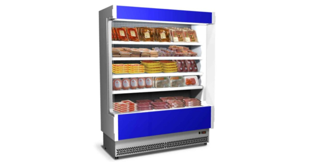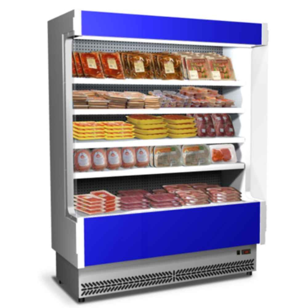 Nyitott hűtővitrin felvágottak és tejtermékek bemutatására