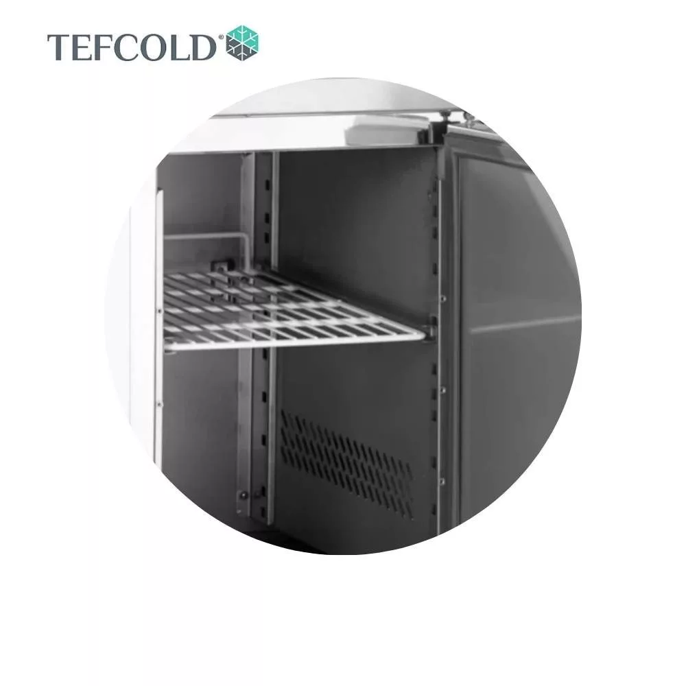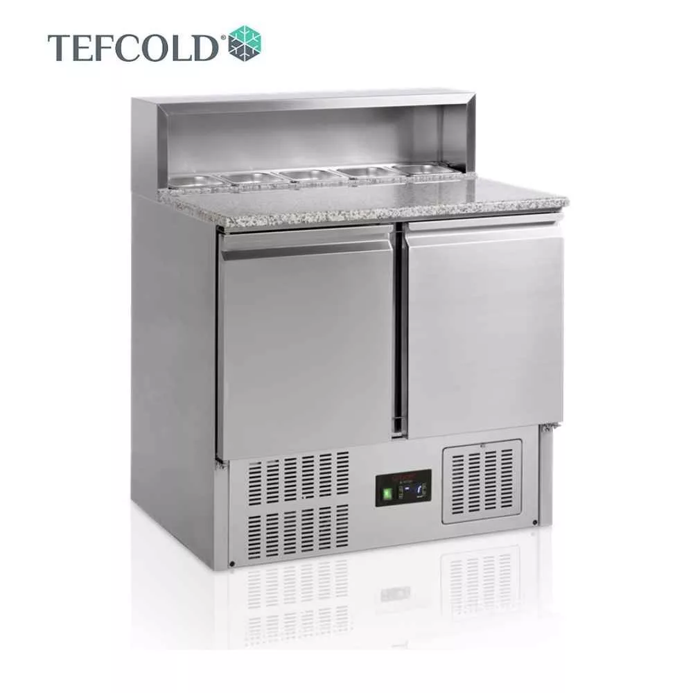 Hűtött pizza munkaasztal, rozsdamentes acélból, gránit asztallappal, 2 ajtós tárolóval.
