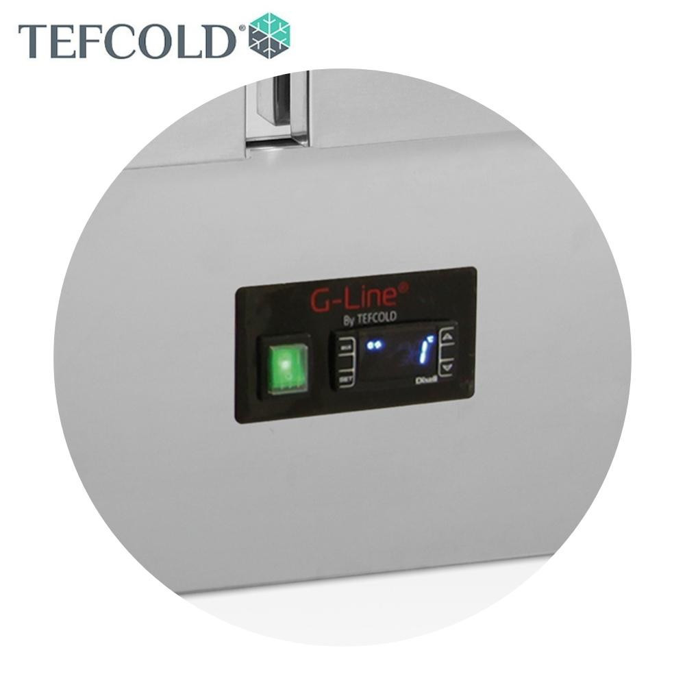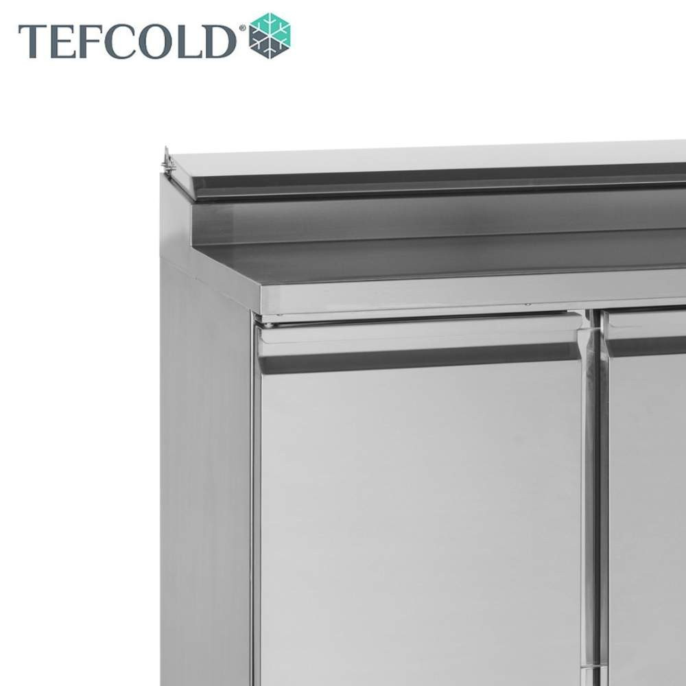 Tefcold rozsdamentes acélból készült salátahűtő pult feltéthűtővel, három magától záródó ajtóval, rozsdamentes fedlappal. Ventilációs hűtéssel, elektronikus vezérléssel és beépített hőmérővel. A leolvasztás automatikusan történik.