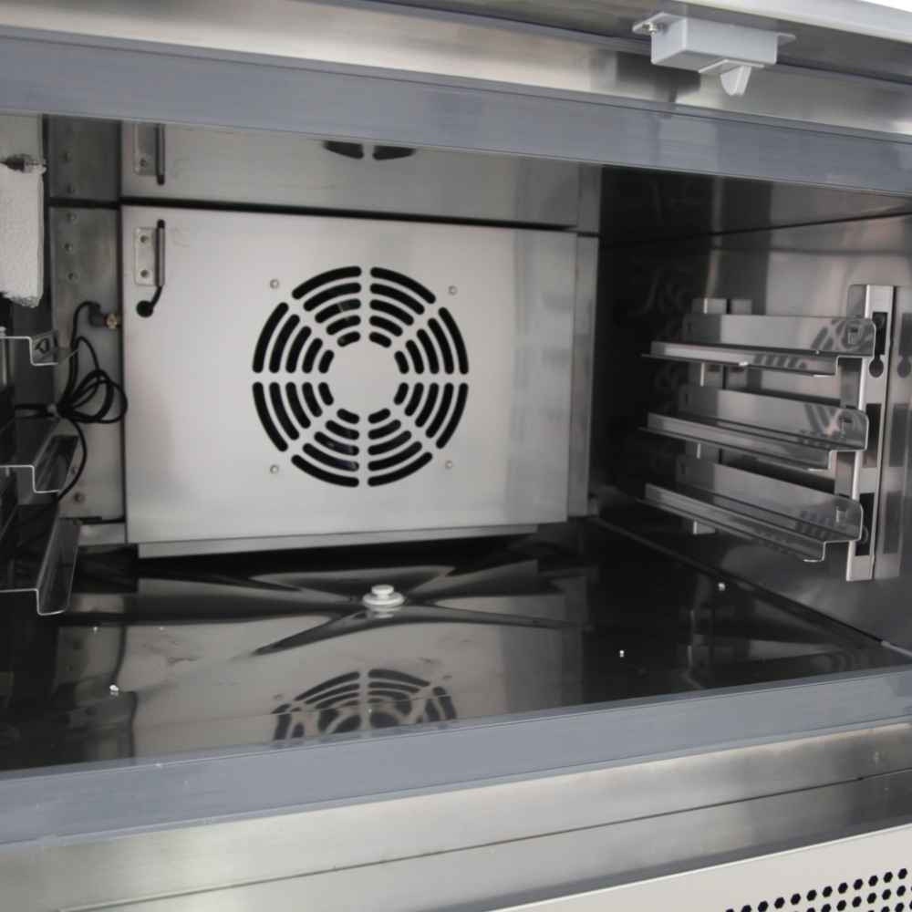 A készülék automatikus leolvasztó rendszere (forró gázas technológia) gyors és hatékony karbantartást tesz lehetővé, csökkentve a leállási időt. A strapabíró sínpárok és az egyszerűen tisztítható belső kialakítás kevesebb időt igényel a napi üzemeltetés alatt, ezáltal növeli a konyhai hatékonyságot. Mindemellett a precíz vezérlés stabil hőmérsékletet biztosít a teljes ciklus során, ami hosszú távon csökkenti a selejt arányát és javítja a termékminőséget.