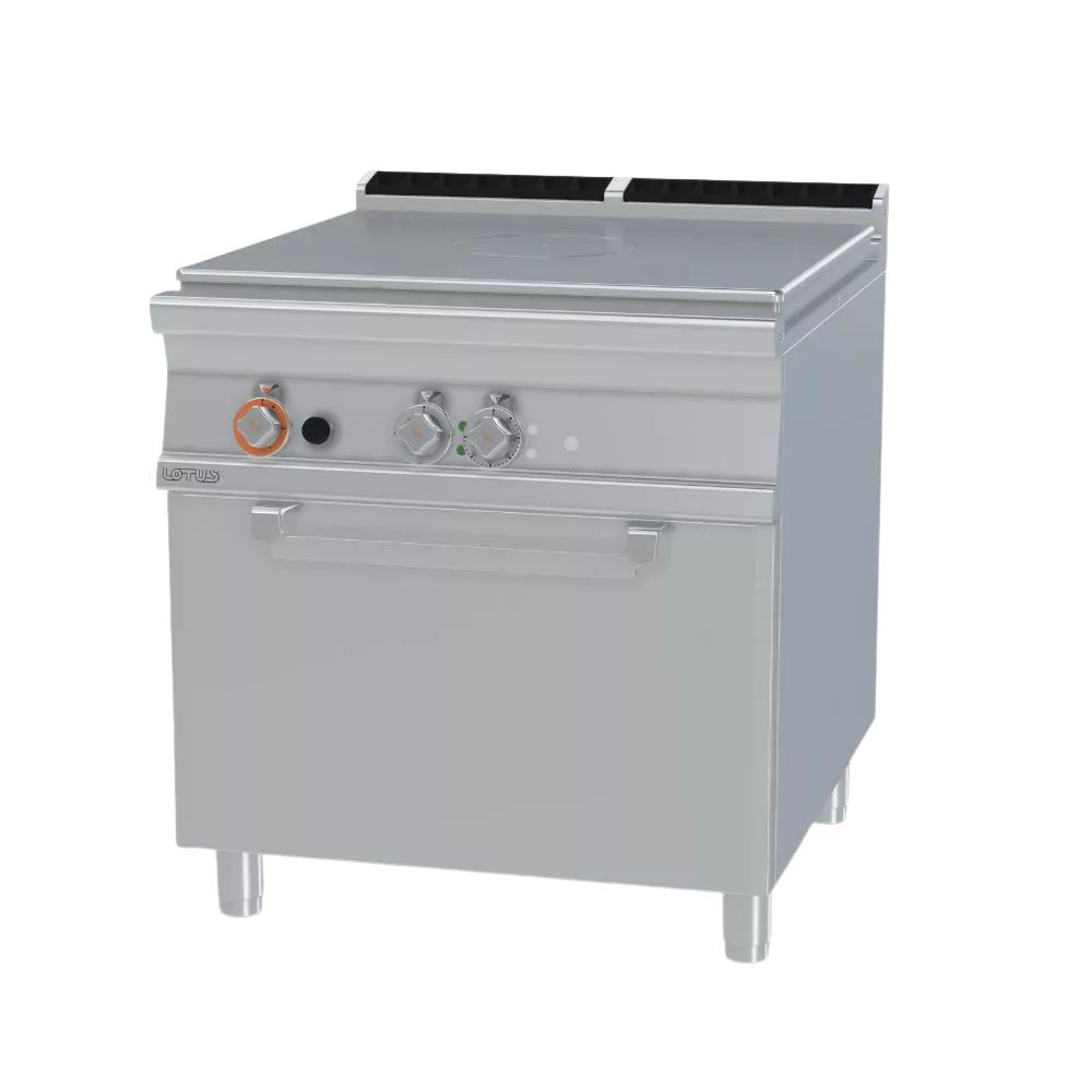 Olaszországban gyártott, rozsdamentes acél kivitelű, gázüzemű ipari tűzhely, főzőlap, 1 zónával, 2 mm vastag munkalappal, elektromos statikus sütővel, IPX5 védelemmel. A főzőfelület 1 zónás francia lap. Sütőrács mérete: GN2/1.