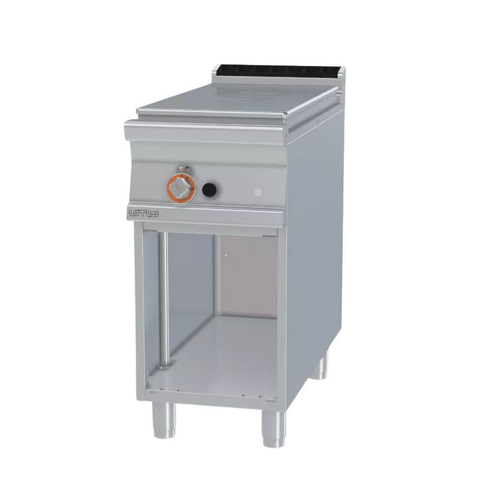 Ez a gázüzemű ipari tűzhely kimondottan olyan professzionális konyhai környezetekhez készült, ahol egy zóna intenzív, megbízható főzési felületre van szükség. A francia lap kialakítás gyors és egyenletes hőelosztást biztosít, míg a rozsdamentes acél burkolat tartósságot és egyszerű tisztíthatóságot nyújt a folyamatos üzemeltetés mellett. A készülék kialakítása lehetővé teszi a hatékony munkafolyamatot kisebb konyhákban, büfékben, vendéglátó egységekben és időszakos rendezvényeken.