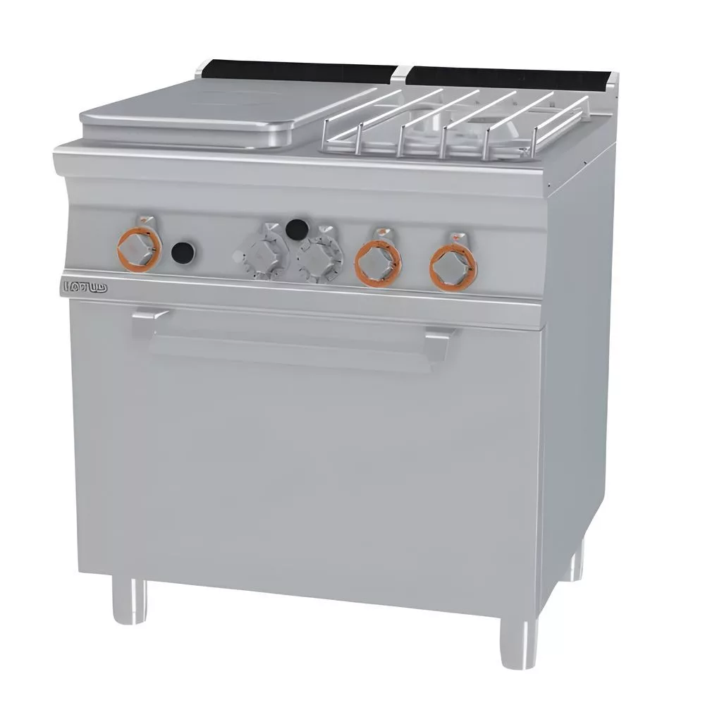 A kezelőszervek egyszerűen elérhetőek és logikus elrendezésűek, így a személyzet minimalizált idő alatt végezhet el alapbeállításokat és hőmérséklet-szabályozást. A francia lap gyors reagálása ideálissá teszi serpenyős, wok-szerű vagy rövid ideig tartó magas hőmérsékletű készítésekhez, míg az égők finom lángszabályozása alacsonyabb hőfokon történő pároláshoz és lassú főzéshez előnyös. A sütő belseje GN2/1 rácsok befogadására alkalmas, ami a vendéglátóipari normáknak megfelelő tárolást és adagolást teszi lehetővé.