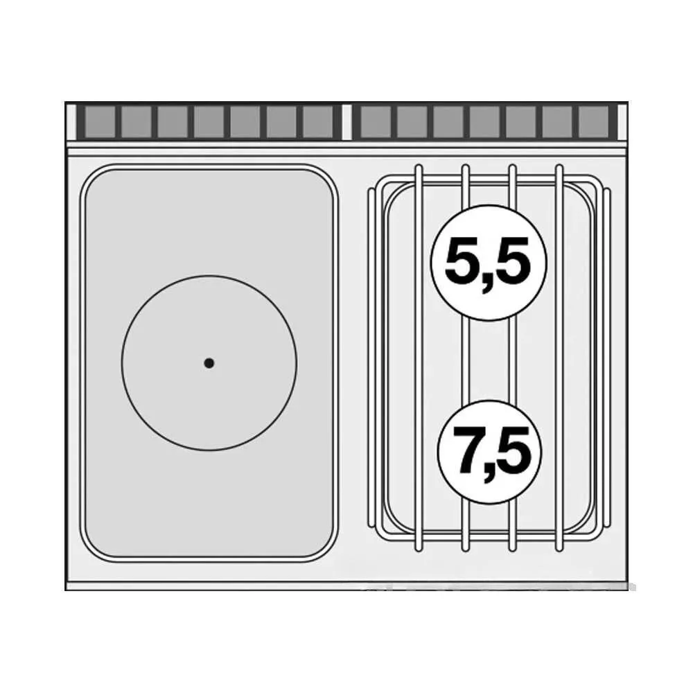 Ez a nagy teljesítményű, olasz gyártású gázüzemű tűzhely kifejezetten professzionális konyhákba, éttermekbe és közétkeztetési környezetbe készült. Rozsdamentes acél kivitele és masszív felépítése hosszú élettartamot és megbízható működést biztosít a folyamatos, intenzív használat mellett. A kombinált főzőfelület — egy egységbe épített francia lap és égőfejek — lehetővé teszi a változatos főzési technikák gyors váltását.