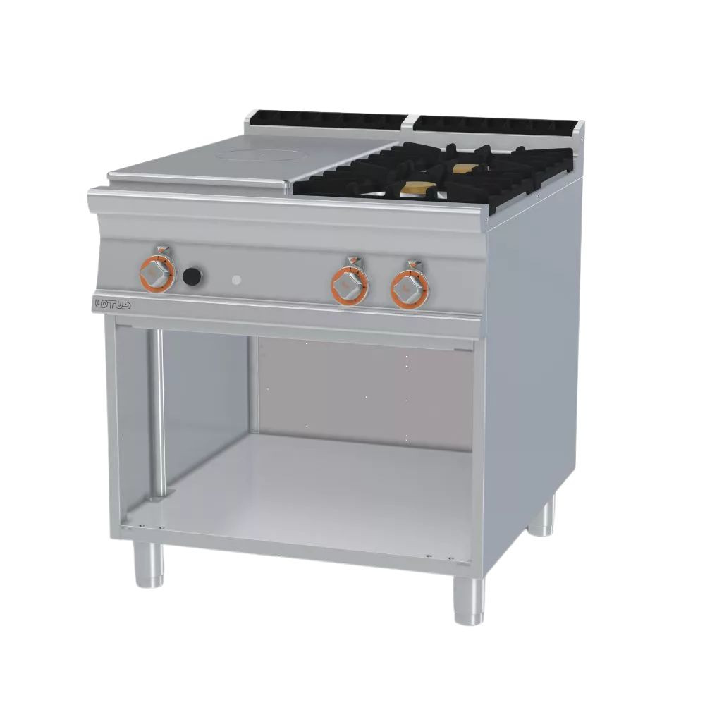 Ez a gázüzemű ipari készülék a professzionális vendéglátóhelyek igényeihez igazodva kínál nagy teljesítményt és hosszú élettartamot. Rozsdamentes acél borítása és masszív kialakítása biztosítja a mindennapos, intenzív használatot, miközben a modern biztonsági és higiéniai elvárásoknak is megfelel. Az egyszerűen kezelhető főzőfelület és a praktikus tárolási megoldás segíti a konyhai munkafolyamatok felgyorsítását és optimalizálását.
