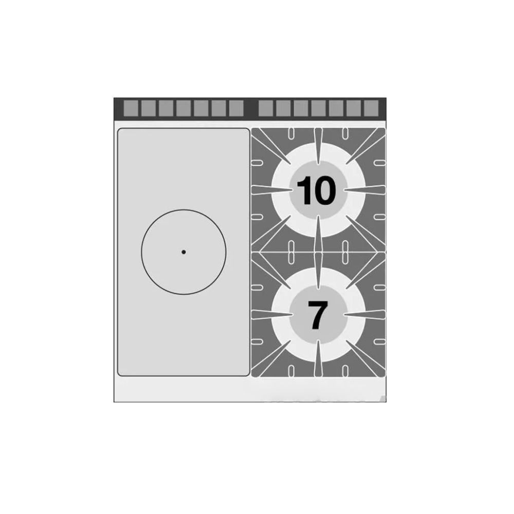 A kombinált felület egy zónás francia lappal és két égőfejjel lehetővé teszi a sokféle főzési technika párhuzamos alkalmazását: a sima griddle-felület ideális serpenyős sütésekhez, gyors pirításhoz és egyenletes hőelosztáshoz, míg az égők rugalmasan szabályozhatók forraláshoz és pároláshoz. Az összteljesítmény 24 kW gyors reakcióidőt és erőteljes hőleadást biztosít, így a csúcsterhelés alatt is megtartja a kívánt hőmérsékletet. A francia lap mérete (390x730 mm) elegendő felületet ad nagyobb serpenyők és több adag egyszerre történő elkészítéséhez, ugyanakkor kompakt mérete lehetővé teszi a könnyebb illesztést a konyhai munkapultok közé.