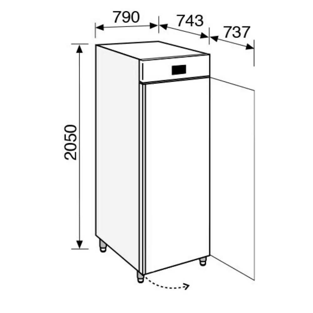 Késletetett kelesztőszekrény teljes egészében rozsdamentes acélból, belül lekerekített sarkokkal és formázott aljjal, 60 mm-es környezetbarát poliuretán szigeteléssel, érintőképernyővel.