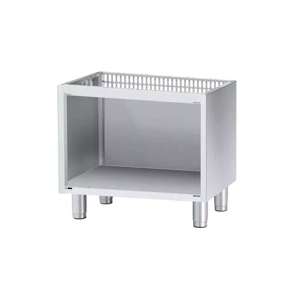 A készülék alépítmény univerzális megoldásként szolgál különböző konyhai berendezések alapjaként: sütők, főzőegységek és más professzionális eszközök alá telepítve növeli a hasznos munkaterületet és megkönnyíti a gépek körüli takarítást. Az erős konstrukció lehetővé teszi a stabil és biztonságos elhelyezést, miközben esztétikailag is illeszkedik a modern, ipari konyhákhoz.