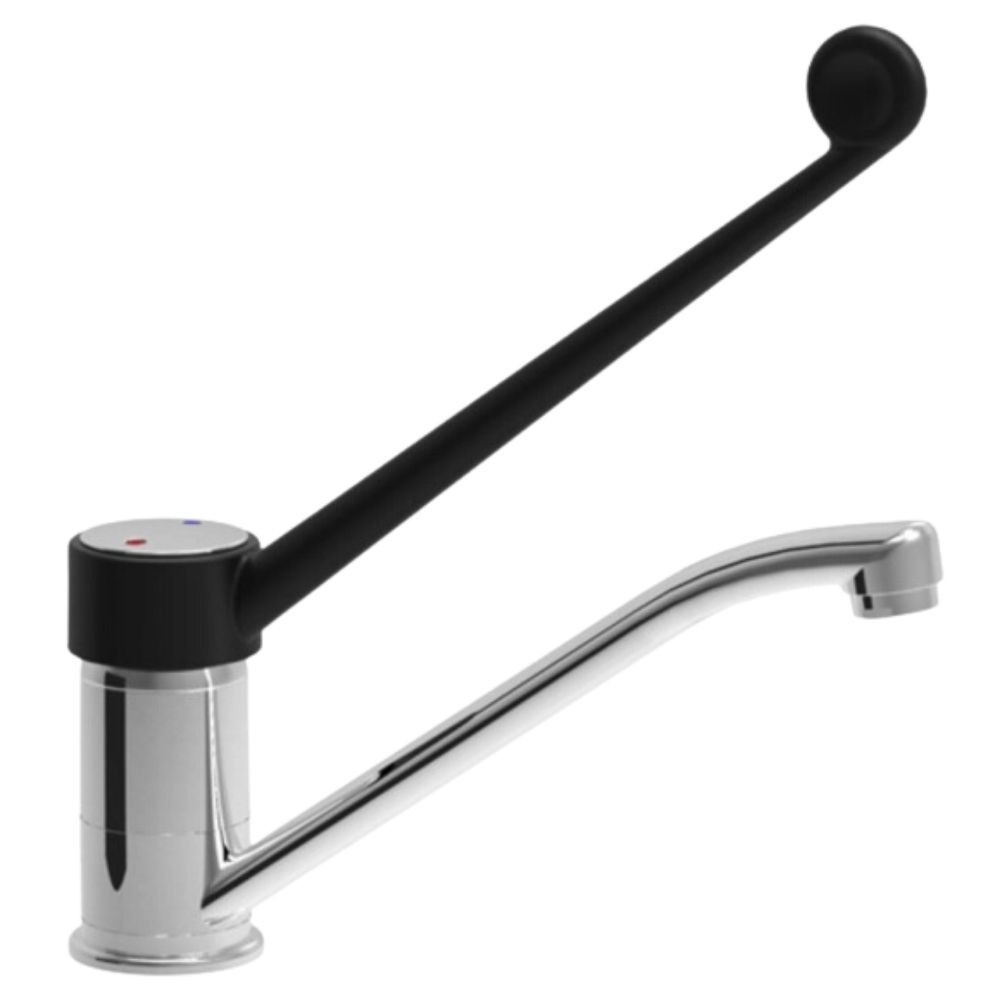 Orvosi karos keverőcsap krómozott öntvényből, kerámiabetéttel, fekete karral.