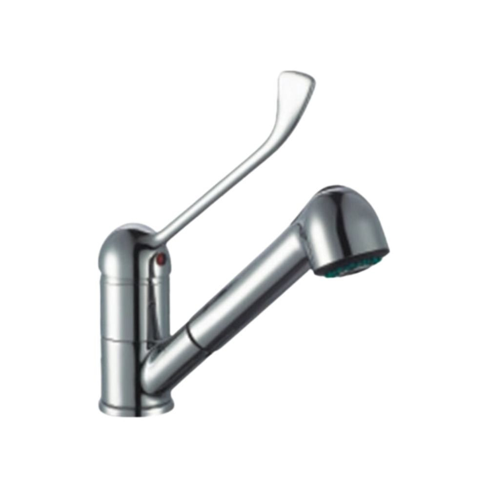 Keverőcsap, asztali, hosszú orvosi karral, kihúzható zuhanyfejjel