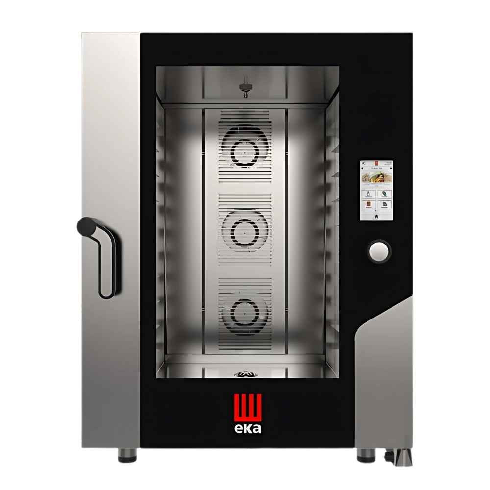 Tecnoeka kombi sütő gőzpároló, elektromos, cukrászati, 10 tálcás, érintőpaneles, 17 kw