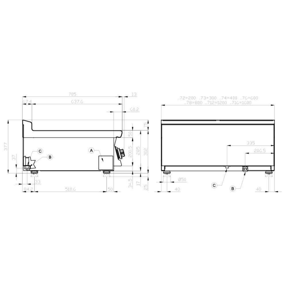 A kezelőszervek ipari környezetre szabottak: vízálló (IPX5) kivitelük lehetővé teszi a nedves konyhai körülmények közötti biztonságos használatot és egyszerű, gyors tisztítást. A stabil felépítés, a krómozott részletek és az állítható lábak biztosítják a készülék ergonomikus elhelyezését és biztonságos üzemét a pulton.