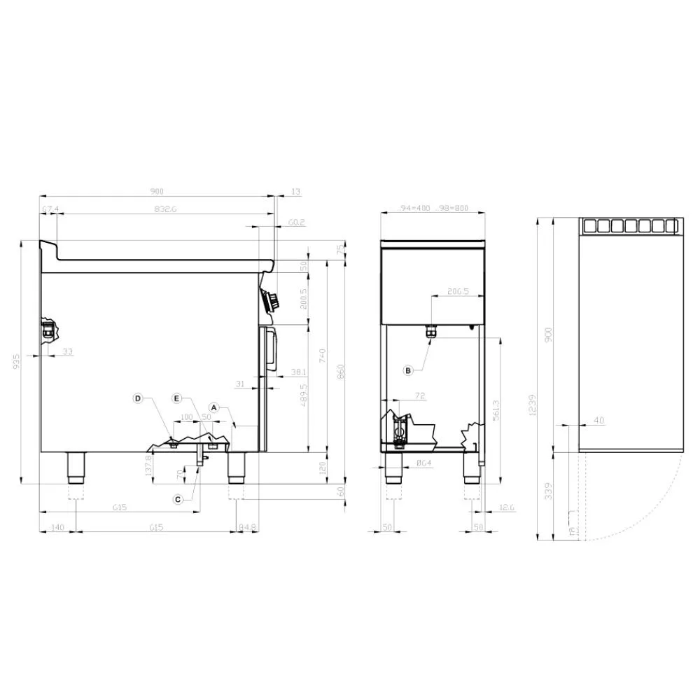 A Scotch-Brite szatén (finoman csiszolt, matt struktúrára) felületkezelés, a 2 mm vastag munkalap, a lekerekített élek és a krómozott részletek egyaránt a prémium megjelenést és a biztonságos munkavégzést szolgálják. A beépített 150 mm mély, formázott GN (GN 1/1 530x325 mm, GN 1/3 325 x 176 mm) tartály lehetővé teszi különféle meleg ételek egyenletes hőntartását, míg a termosztatikus hőmérséklet-szabályozás pontos és stabil működést garantál.