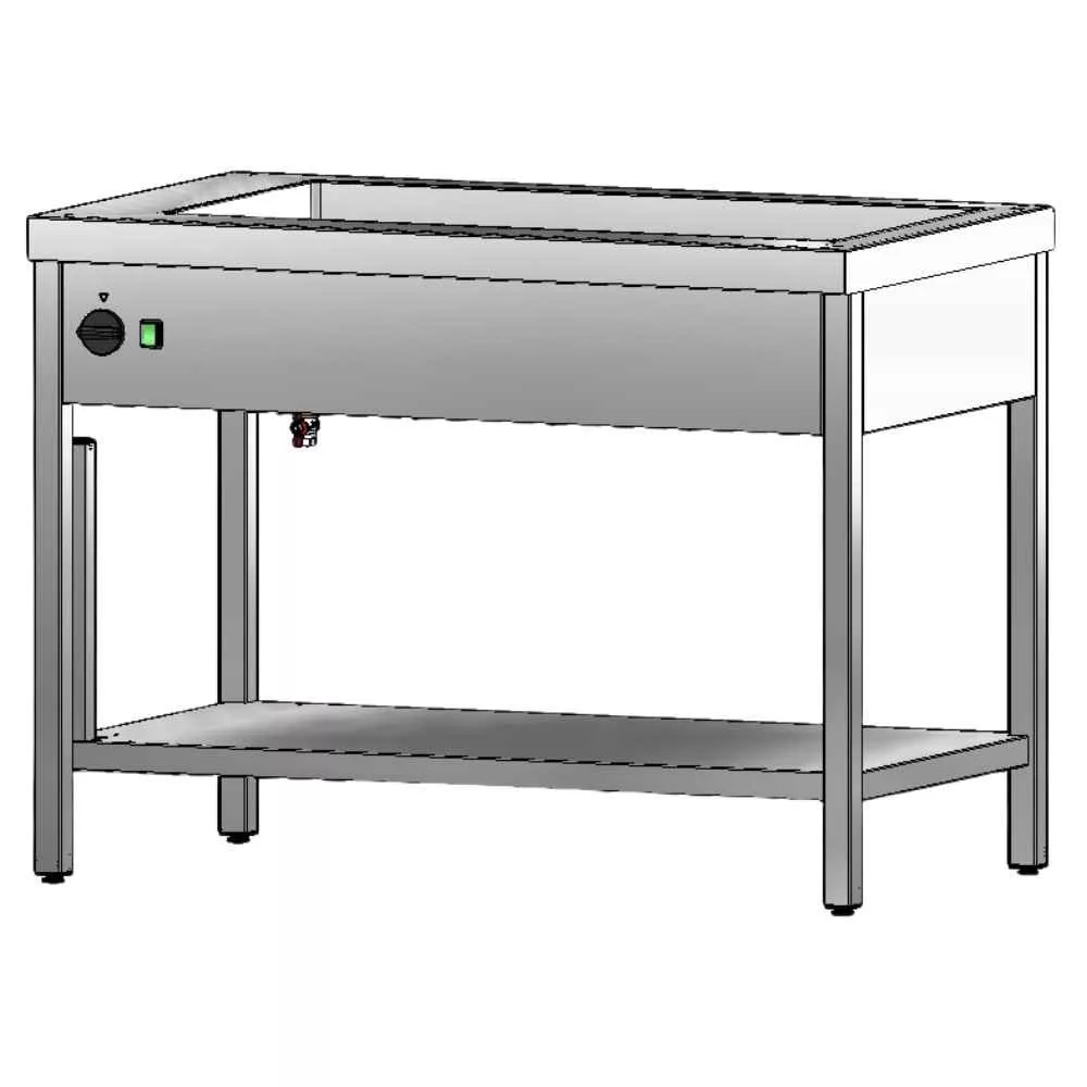 Magyarországon gyártott, oldalt zárt állványos ajtó nélkül, vízfürdős melegentartó berendezés, elektromos üzemeltetéssel. A melegentartó 1 medencével rendelkezik, 3xGN1/1 méretű edényekkel használható. A vízleeresztés és vízfeltöltés manuálisan történik.