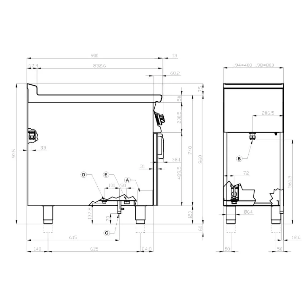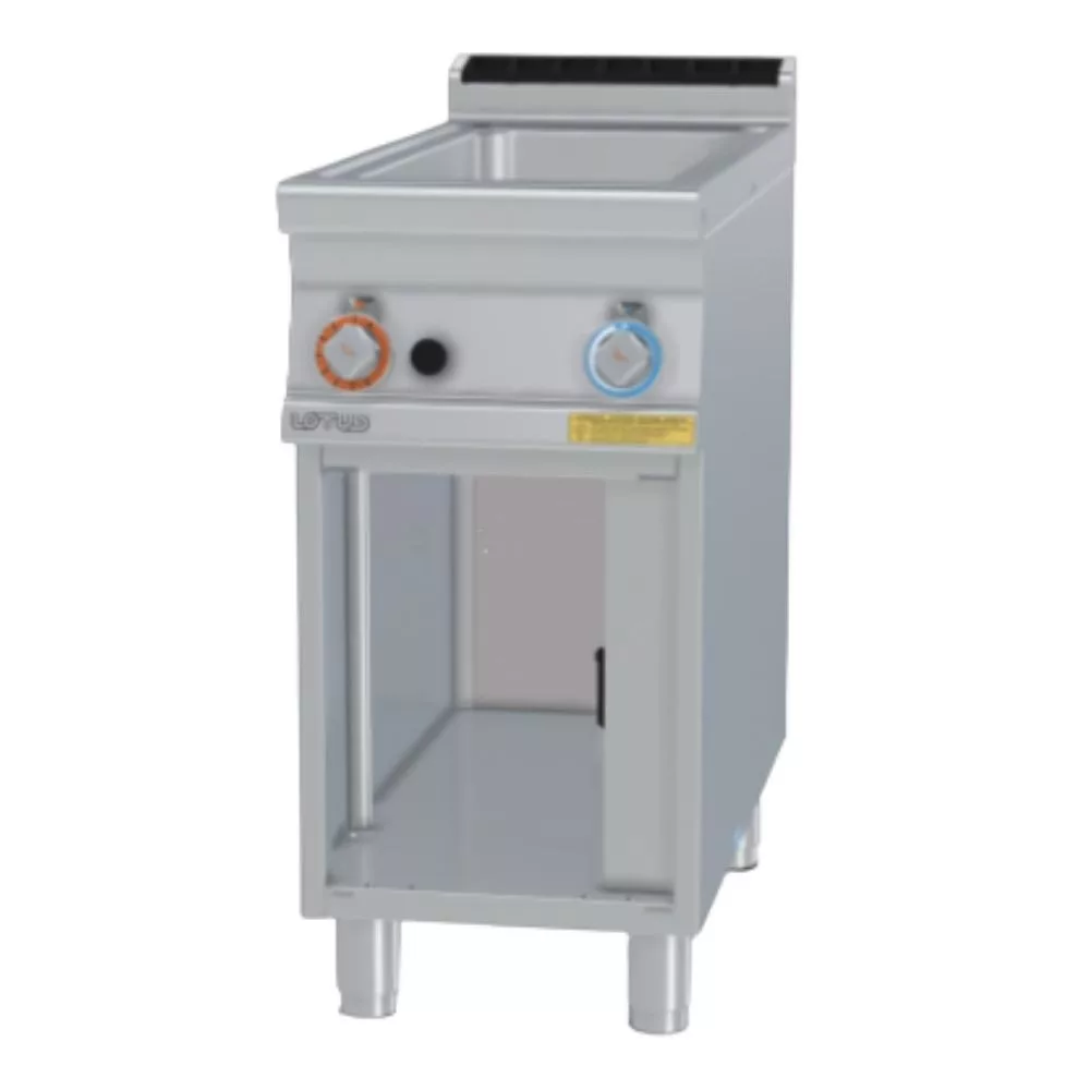 Olaszországban gyártott, főzősorba illeszthető gázüzemű, vízfürdős melegentartó. 1 medencével rendelkezik, GN1/1-es vagy GN1/3-as méretű edényekkel használható. A vízleeresztés és vízfeltöltés manuálisan történik.