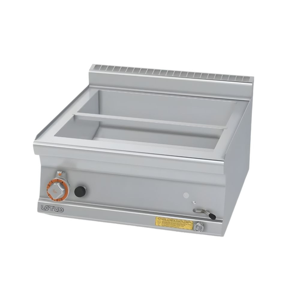 A vízfeltöltés és -leeresztés manuálisan történik, ami egyszerű és gyors karbantartást tesz lehetővé, ugyanakkor a kezelőnek figyelemmel kell lennie a vízszintre a folyamatos, biztonságos működés érdekében. Asztali kialakítása megkönnyíti az elhelyezést szerviz- és tálalófelületeken anélkül, hogy jelentős helyet foglalna. A gázüzemű rendszer gyors reakcióidőt ad a hőmérsékletigények változására, így a konyhai műveletek dinamikusan igazíthatók.