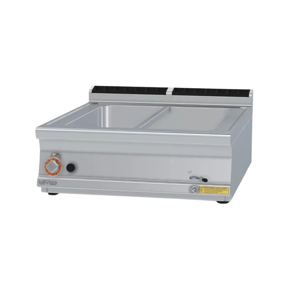 Ez a gázüzemű, vízfürdős melegentartó kifejezetten a vendéglátóipari igényekhez tervezett megoldás: folyamatos, egyenletes hőmérsékletet biztosít hosszabb ideig tartó tálalás és műszak közben. Ideális éttermek, szállodai konyhák, catering szolgáltatók és üzemi konyhák számára, ahol a gyors hozzáférés és a megbízható melegentartás alapkövetelmény.