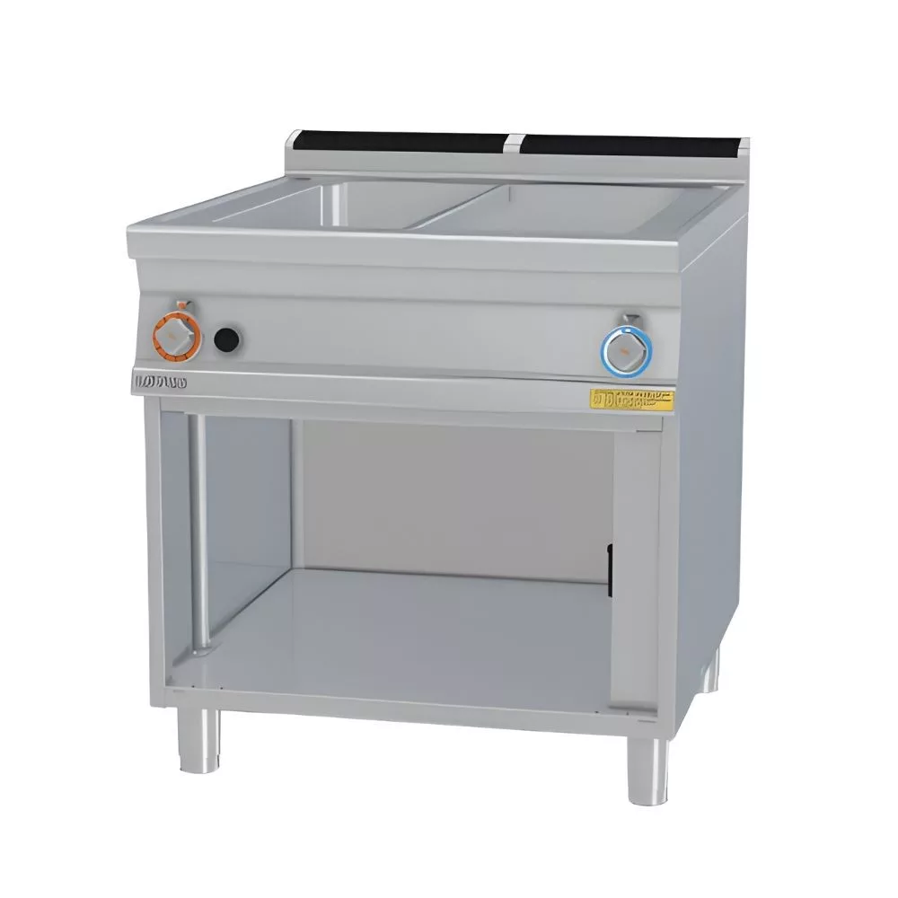 Ez a professzionális gázüzemű bain-marie ideális megoldás éttermek, szállodák, menzák és nagykonyhák számára, ahol fontos az ételek egyenletes hőn tartása és a nagy kapacitás. A nyitott szekrényes kivitel gyors hozzáférést és egyszerű tisztíthatóságot biztosít.