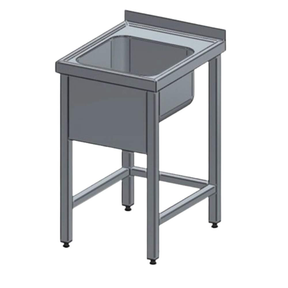 A masszív vázszerkezet és a zártszelvényből készült lábak biztosítják a stabilitást még intenzív használat mellett is. Az állítható lábak lehetővé teszik a pontos szintbeállítást egyenetlen padlókon, így a munkaasztal és környezete mindig optimális magasságban helyezkedik el. A konstrukció egyszerűen csatlakoztatható a meglévő víz- és szennyvízrendszerhez, valamint kompatibilis ipari munkalapokkal és aláépítési megoldásokkal.