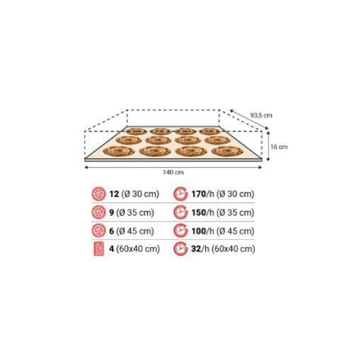 Ez a professzionális, multifunkciós sütő rugalmasan alakítható az igényeidhez: különböző belmagasságokkal (16, 22 vagy 30 cm) és többféle sütőkamra-típussal is rendelhető – például Multibake, Fastbake, Romanbake, Stonebake, Pastrybake vagy Steambake. Tökéletes megoldás klasszikus, nápolyi vagy római tepsis pizzákhoz, pékségeknek, cukrászdáknak és minden gasztronómiai vállalkozásnak. Sokoldalú felhasználásra válaszd a Multibake kamrát, ha pedig egy adott termékre specializálódnál, akkor ott a Romanbake, Stonebake, Pastrybake vagy Steambake.