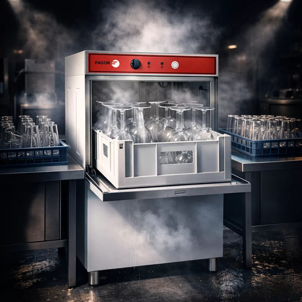 Fagor eco ipari pohármosogató gép, 40x40 cm-es kosár, beépített mosogató öblítő adagolóval