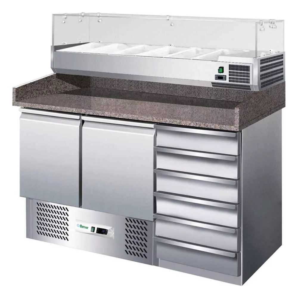 Ideális választás pizzériák, gyorséttermek, ételkiszolgáló pultok és bármely olyan konyhai környezet számára, ahol fontos a gyors feltétkészítés és a higiénikus tárolás. A kombinált fiók- és ajtós elrendezés rugalmasságot ad a munkafolyamat szervezésében, lehetővé téve a személyre szabott elrendezést a forgalom és a menük jellege szerint.