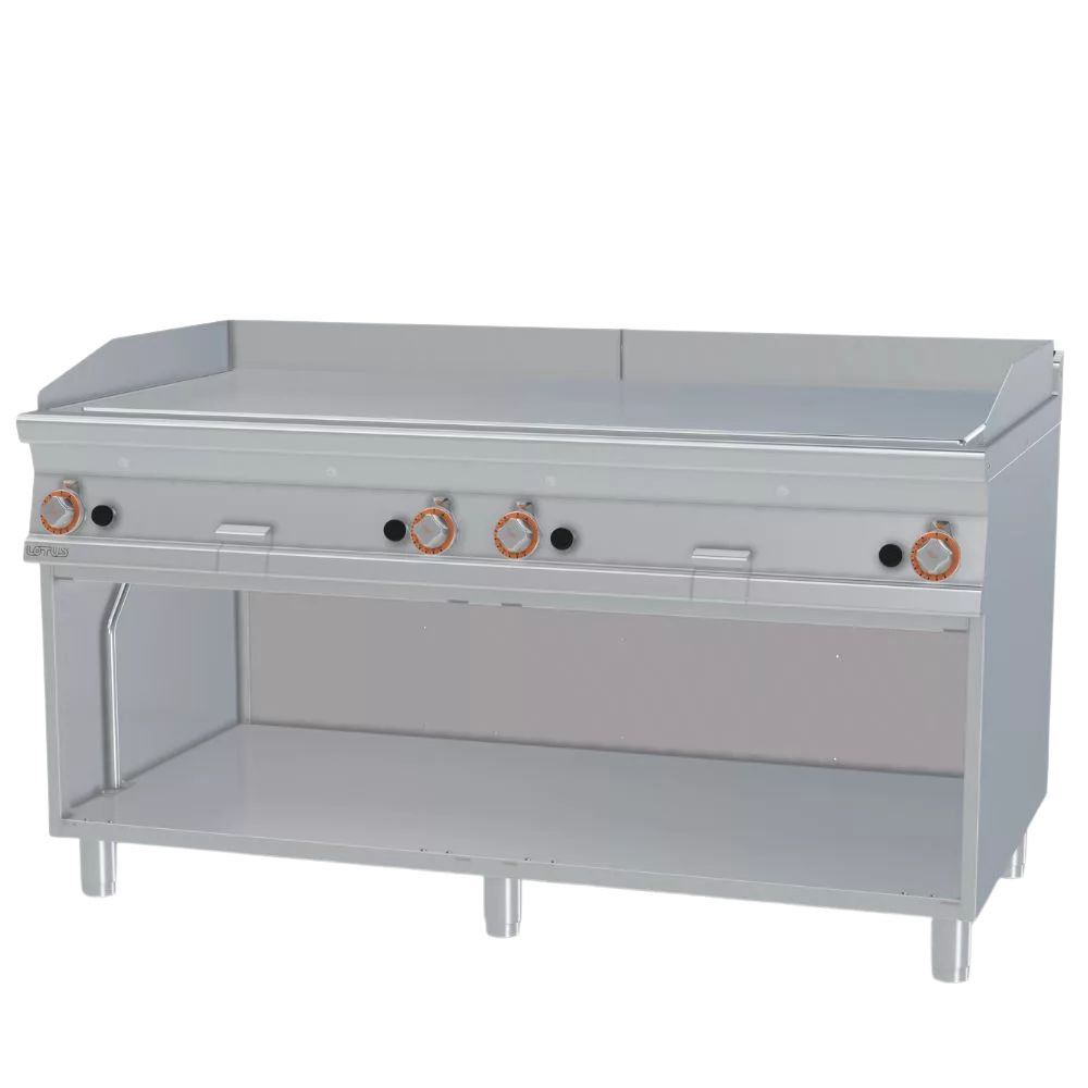 Lotus rostlap, gázüzemű, keménykrómozott, sima felületű, álló, 4 zónás, nyitott tárolóval, 36 kW