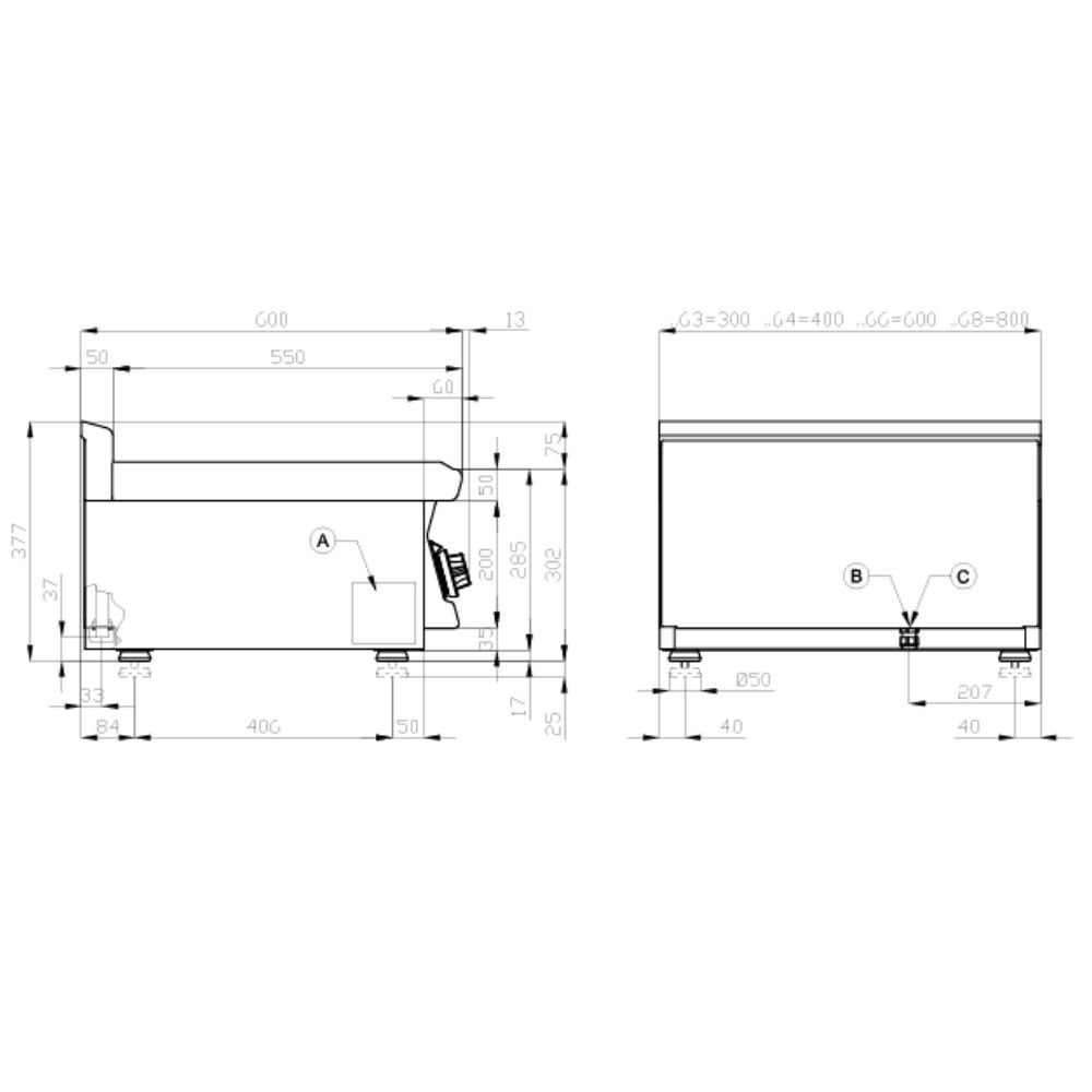 Olaszországban gyártott, nagykonyhai használatra tervezett 2 zónás, 1/2 bordázott + 1/2 sima felületű, asztali, elektromos rostlap, lapsütő, szeletsütő rozsdamentes acélból, 2,5 mm vastag munkalappal, IPX5 védelemmel.
