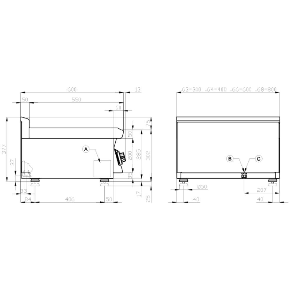 Olaszországban gyártott, nagykonyhai használatra tervezett 2 zónás, sima felületű, asztali, elektromos rostlap, lapsütő, szeletsütő rozsdamentes acélból, 2,5 mm vastag munkalappal, IPX5 védelemmel.