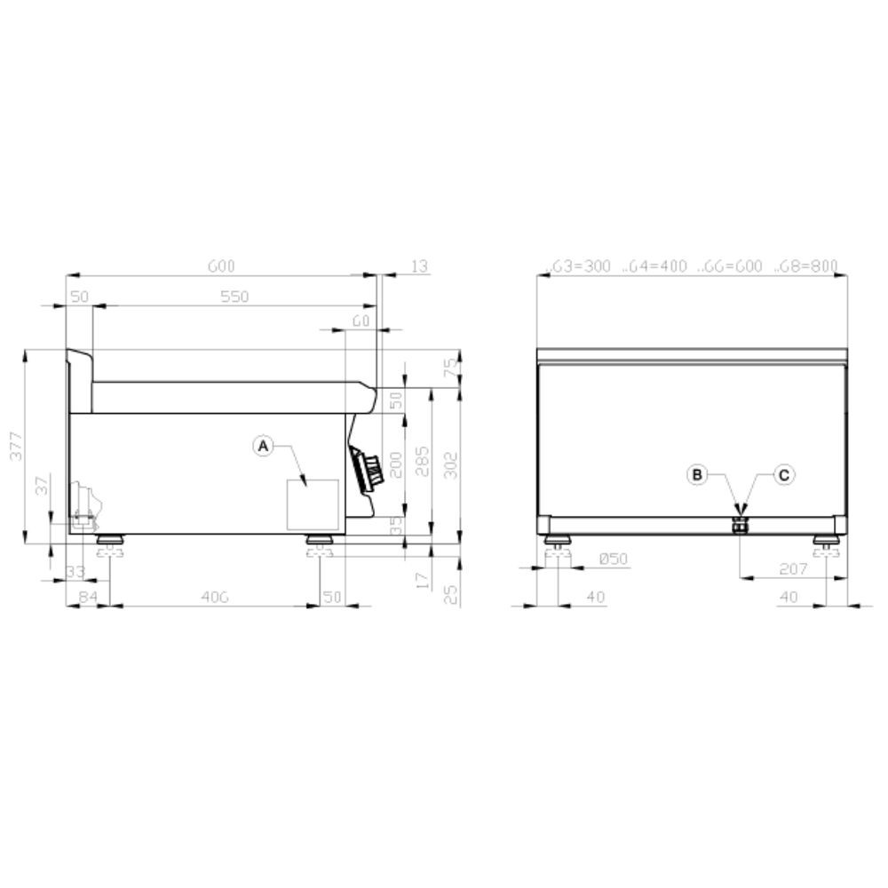 Olaszországban gyártott, nagykonyhai használatra tervezett 2 zónás, sima felületű, asztali, elektromos rostlap, lapsütő, szeletsütő rozsdamentes acélból, 2,5 mm vastag munkalappal, IPX5 védelemmel.
