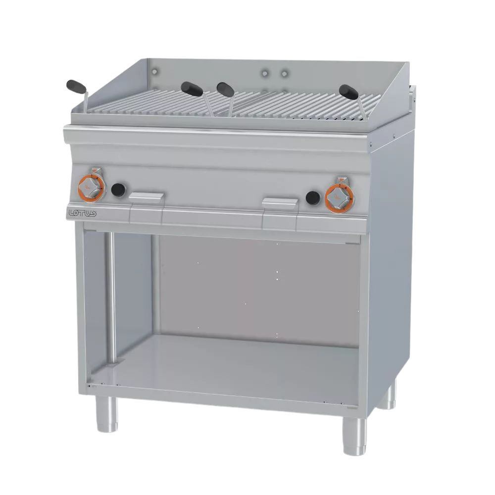 Olaszországban gyártott, rozsdamentes acél, nyílt rostélyú, 2 zónás gázüzemű rostlap, nyitott tárolóval, 2 mm vastag munkalappal, IPX5 védelemmel. A készüléket állítható lábakkal szállítjuk.