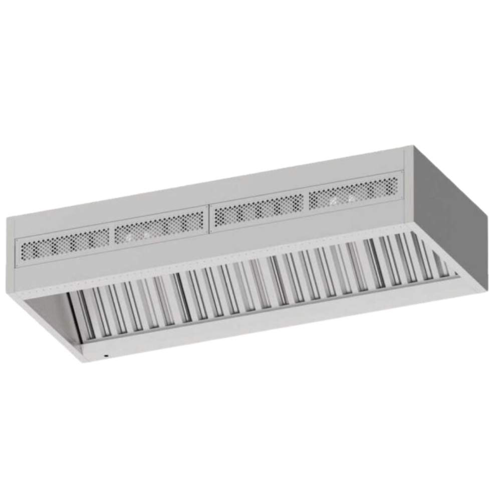 Fali elhelyezésű elszívóernyő, indukciós (segédlégsugár) és friss levegő befúvással.
